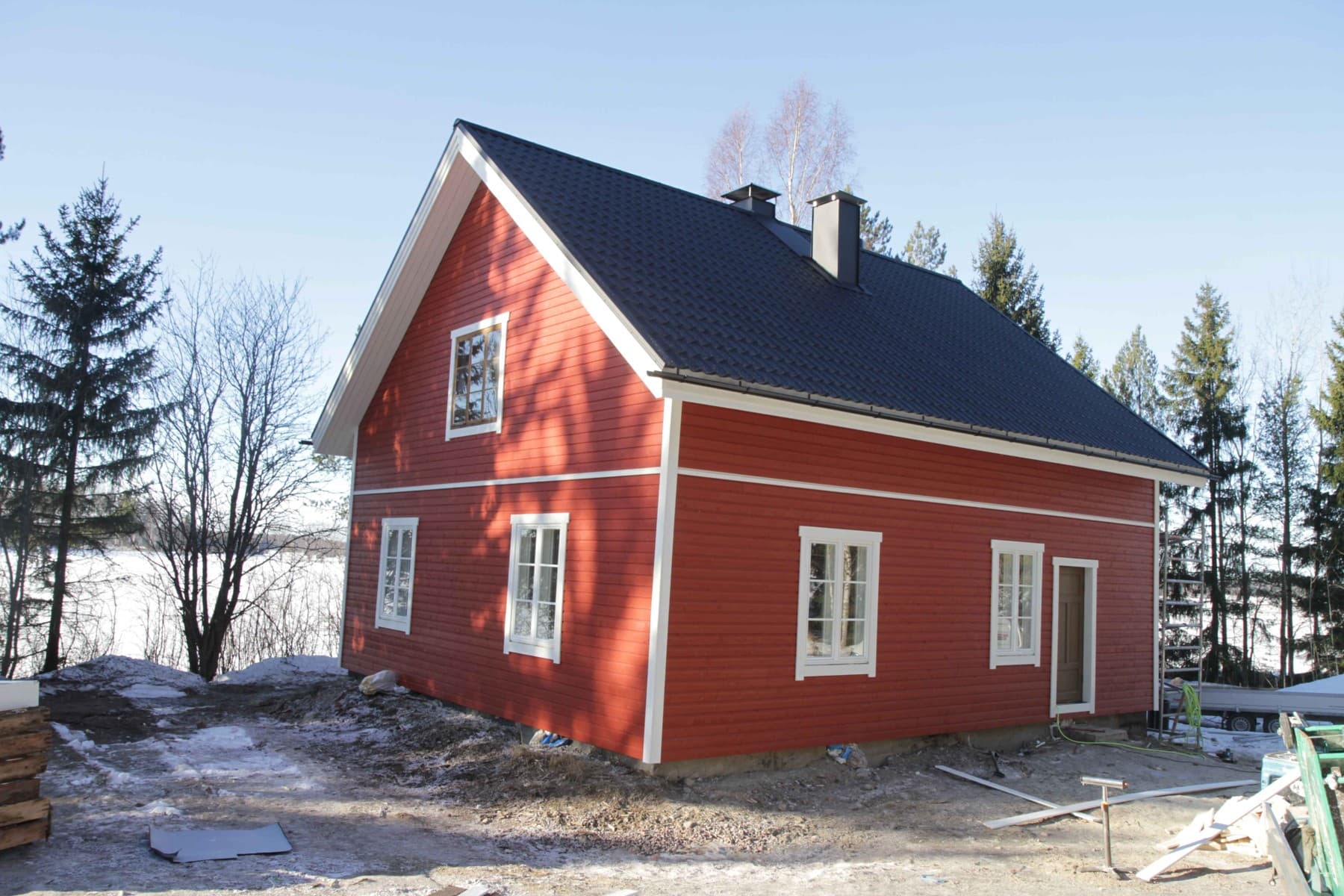 Talon pinnat maalataan 1–2 kertaa säänkestävällä maalilla parhaan lopputuloksen saavuttamiseksi.